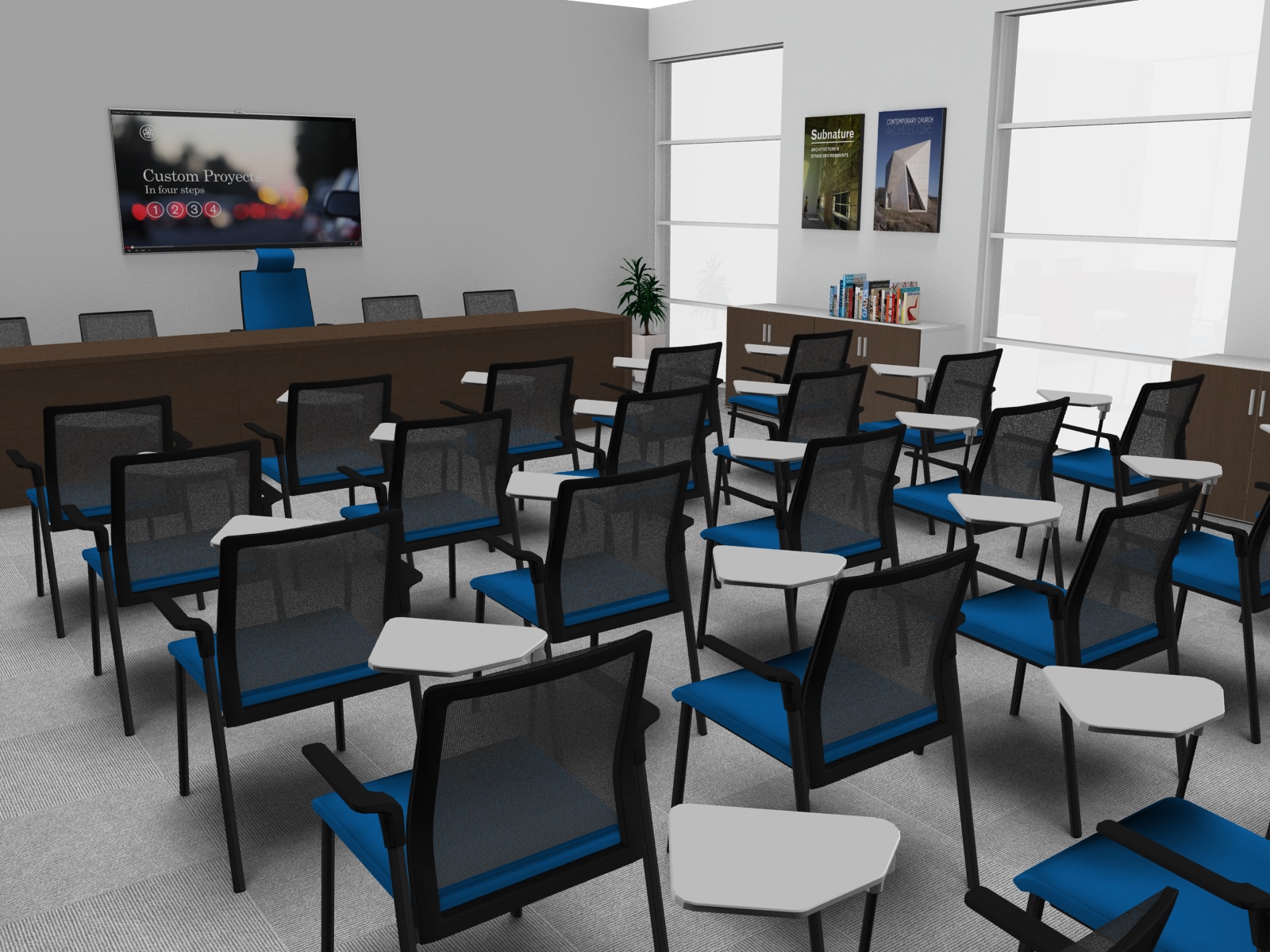 Las líneas perpendiculares se suceden por todo el programa. Con una visión homogénea y compacta, Blok contribuye a crear un espacio de trabajo acogedor y a su vez eficiente.