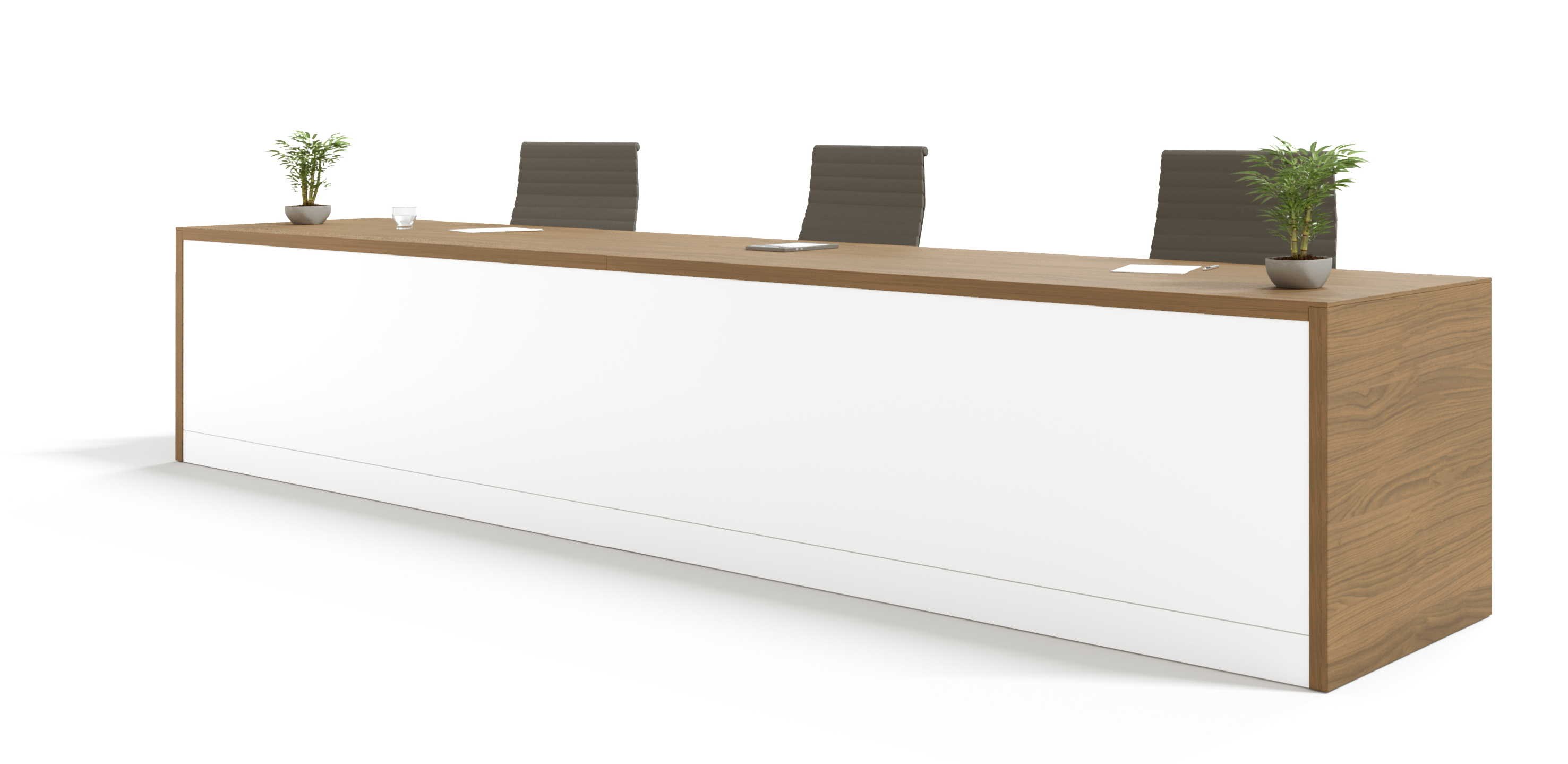 Presentamos la mesa de conferencia Pannel como un concepto estable que invade el espacio de seriedad y elegancia. Su estructura robusta y maciza es perfecta para mantener la estabilidad y el equilibrio. Su apariencia depurada y lisa ofrece una estética visual limpia y serena, transmitiendo un aura de seriedad precisa para la ocasión. Sus acabados están especialmente elegidos para continuar la apariencia señorial y elegante. Su frontal remetido aporta una estética personal; debido a su embellecedor de aluminio, la mesa adquiere mayor potencia visual y hace que resalten sus líneas en el plano horizontal.