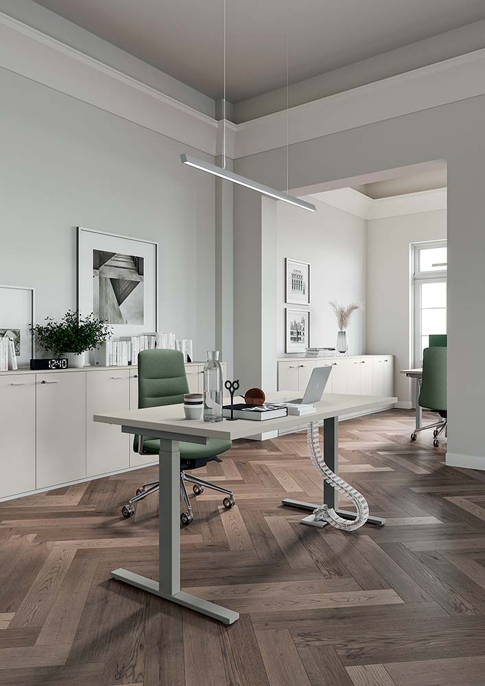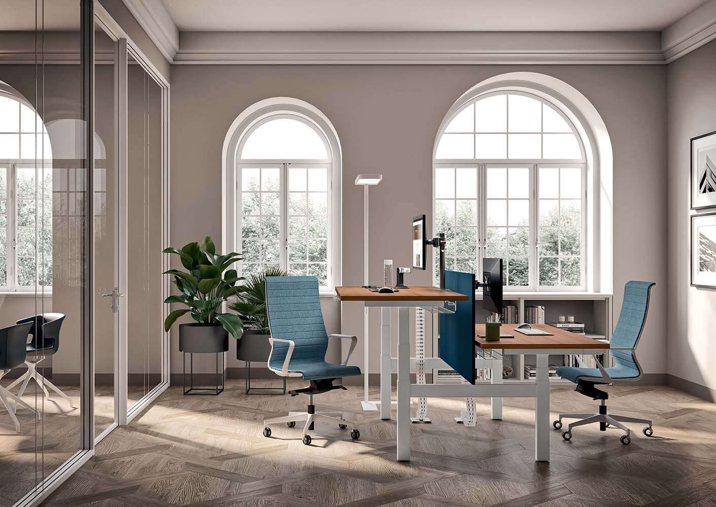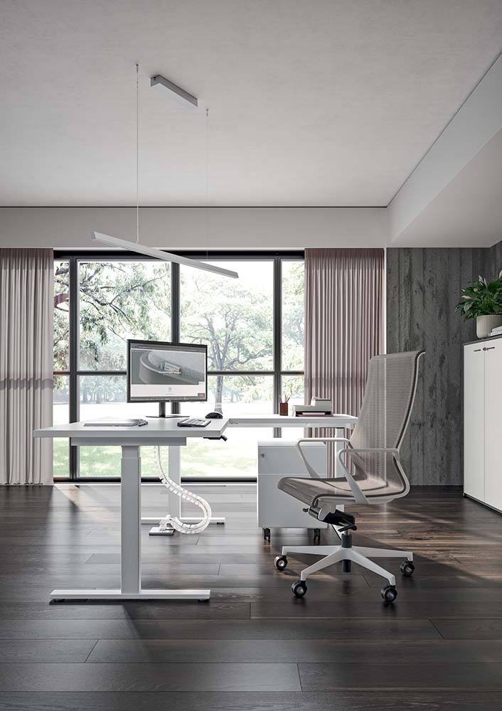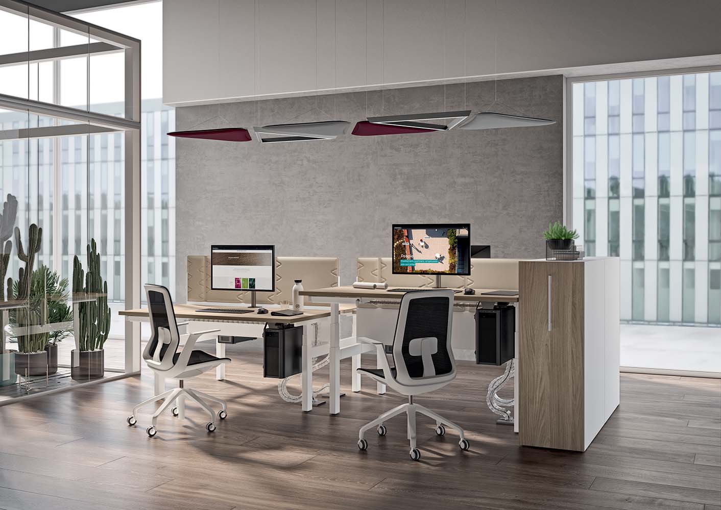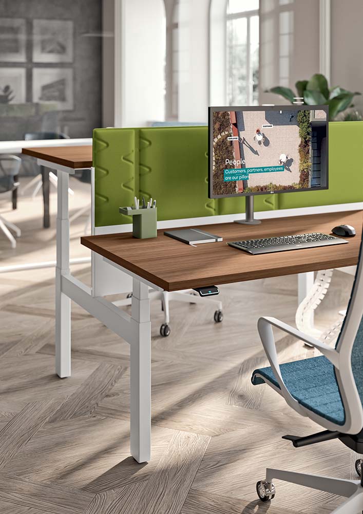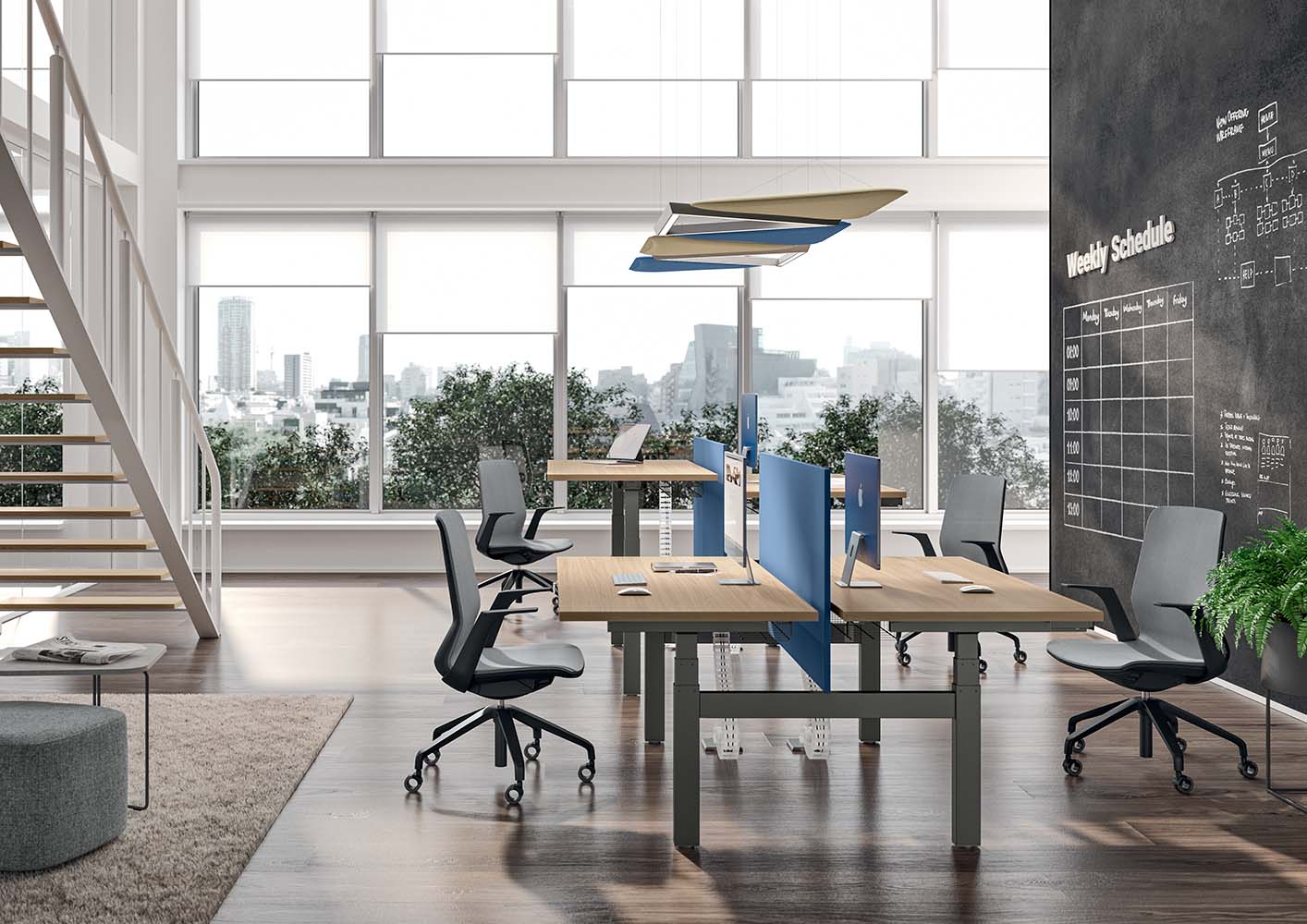 Up&Up es un sistema de mesas regulables en altura de alto rendimiento técnico, diseñado para fomentar el movimiento y el bienestar en el trabajo. Incorpora elevación eléctrica con sistema anticolisión, control programable —incluso vía Bluetooth— y una amplia gama de configuraciones individuales y bench. Fabricada con materiales reciclados y procesos sostenibles, Up&Up combina ergonomía avanzada, personalización y compromiso medioambiental en oficinas modernas y exigentes.