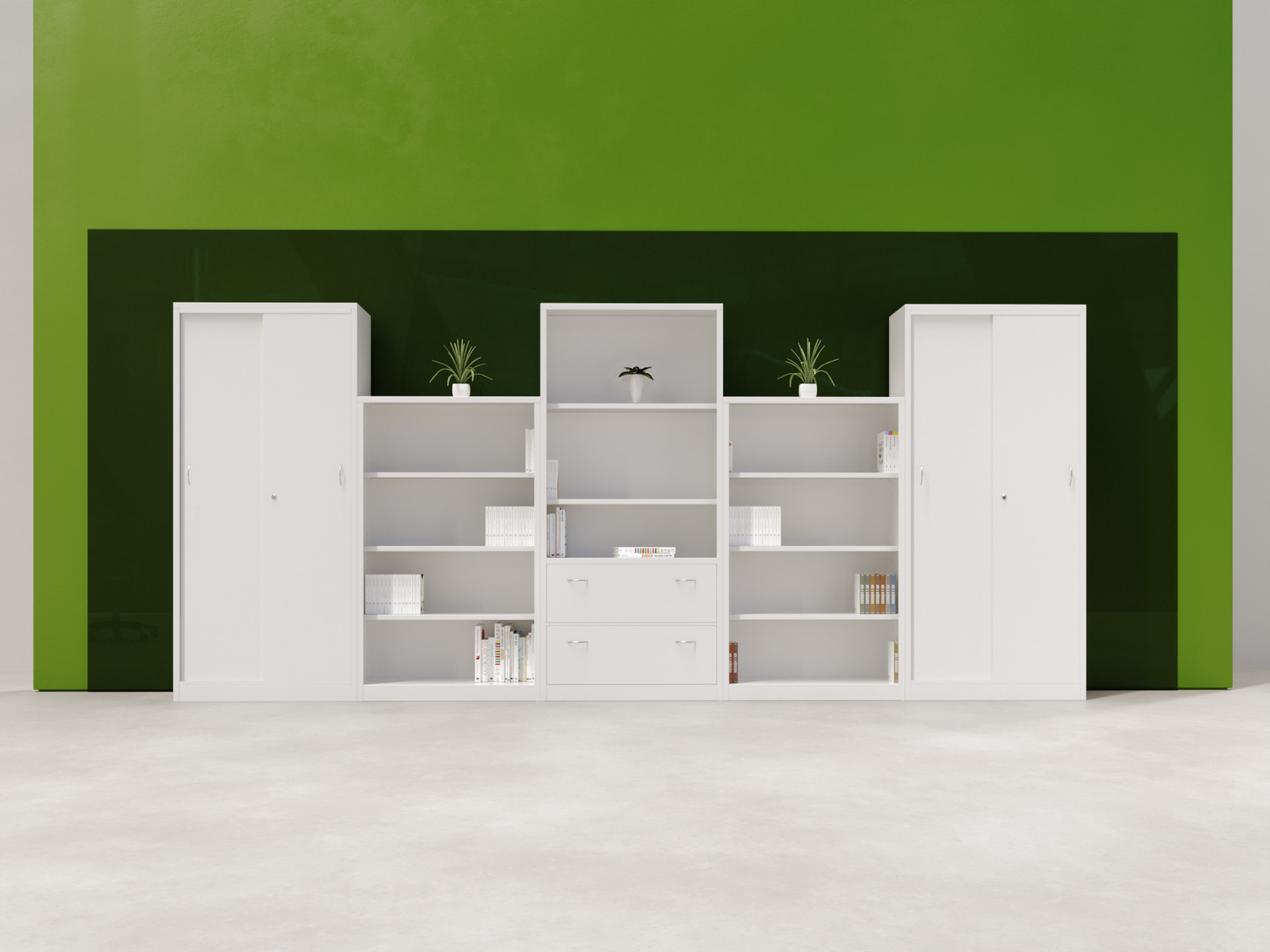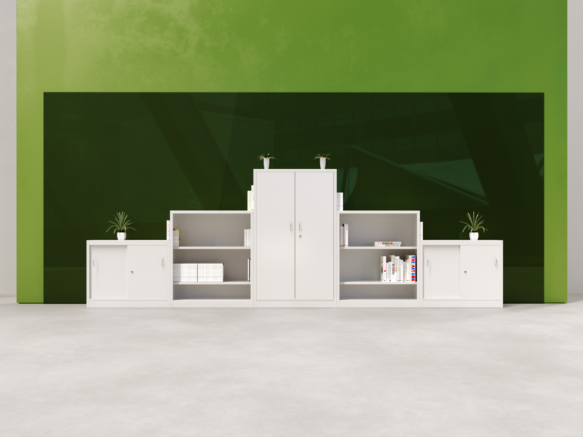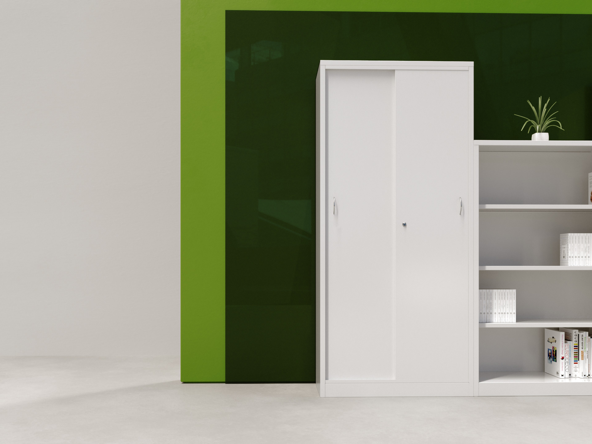 Este programa de almacenaje metálico está concebido como una solución integral para la organización del espacio de trabajo. Combina armarios de distintas alturas, anchos y tipos de puertas con una lógica modular que permite crecer, reconfigurar y adaptarse a lo largo del tiempo. Pensado para un uso diario intensivo, ofrece funcionalidad, gran capacidad y una estética equilibrada que se integra con naturalidad en entornos profesionales contemporáneos.