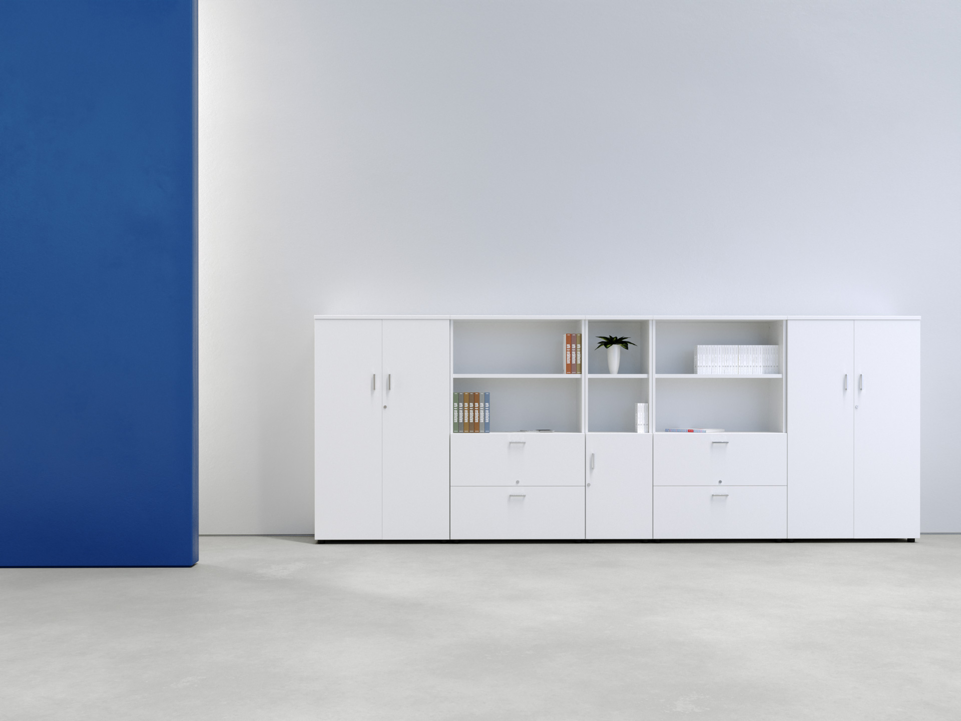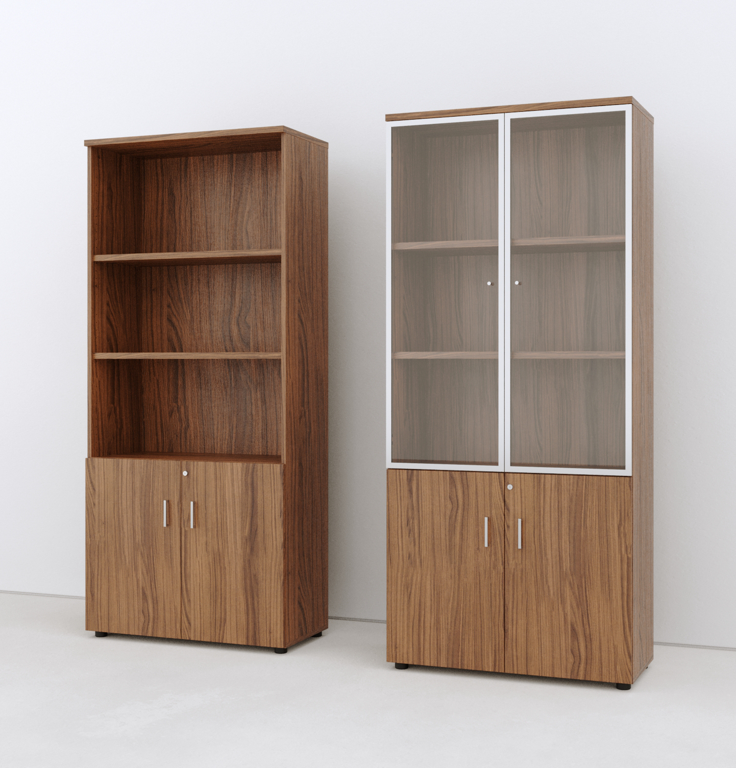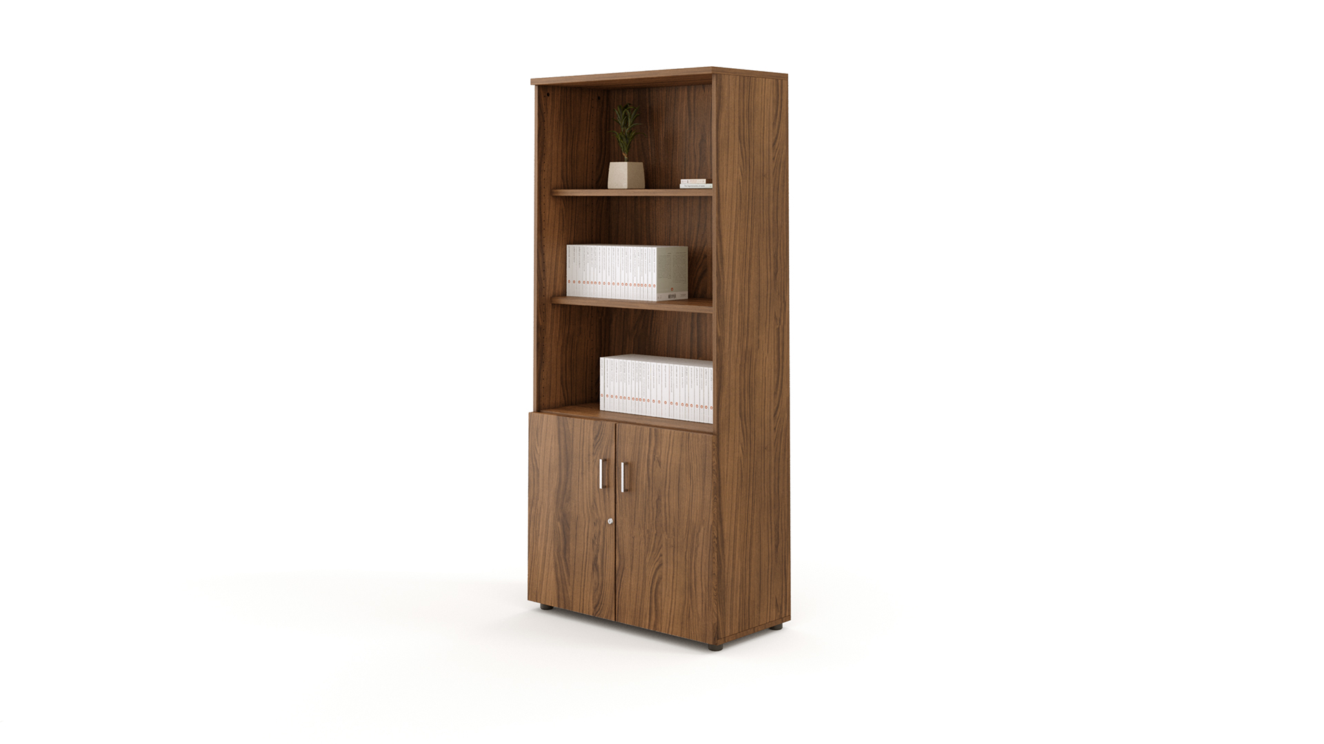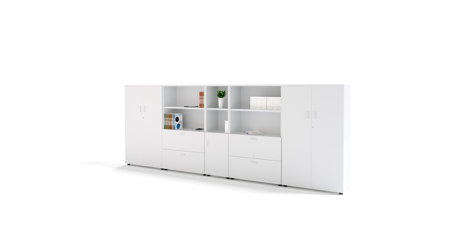 Los Armarios NHB son un sistema de almacenaje modular diseñado para crear oficinas modernas, operativas y altamente configurables. Destacan por su gran versatilidad dimensional, permitiendo combinar distintos anchos, alturas y tipologías —abiertos, cerrados, archivo, puertas bajas o puertas de cristal— para adaptarse a cualquier espacio de trabajo. Su estructura en tablero de 19 mm con niveladores regulables garantiza estabilidad, mientras que los estantes con fijación rápida facilitan el montaje y la reconfiguración. Incorporan cerradura de falleba, opción de puertas de cristal al ácido con perfilería de aluminio y una amplia gama de acabados, convirtiéndose en una solución funcional, polivalente y preparada para crecer junto a la oficina.