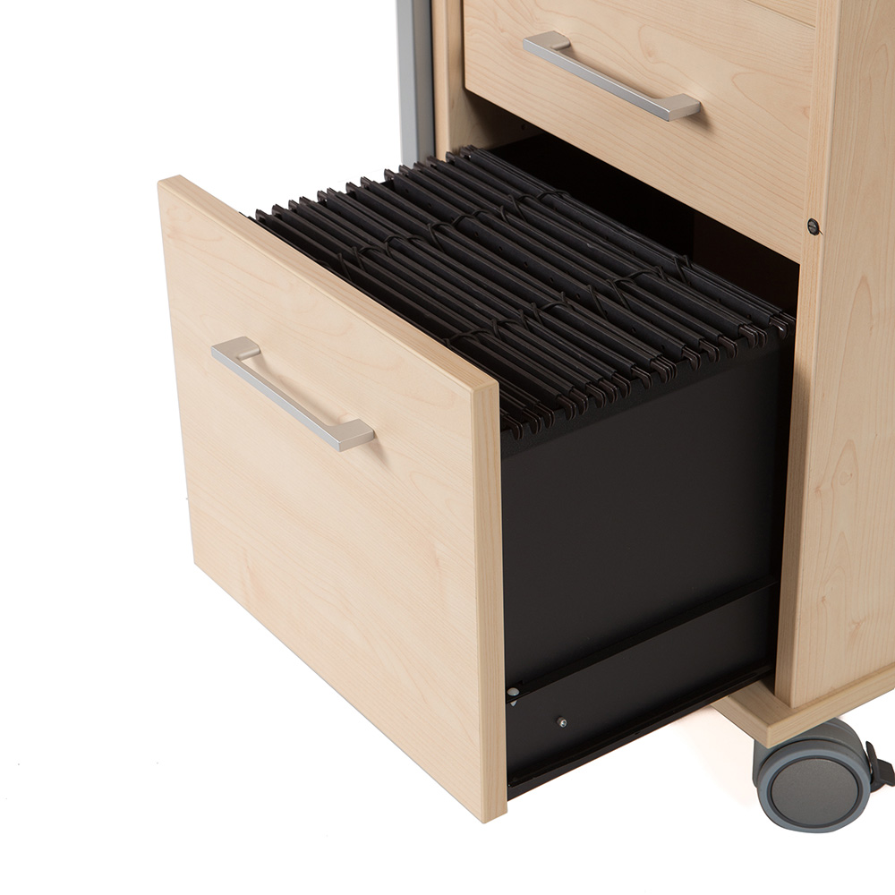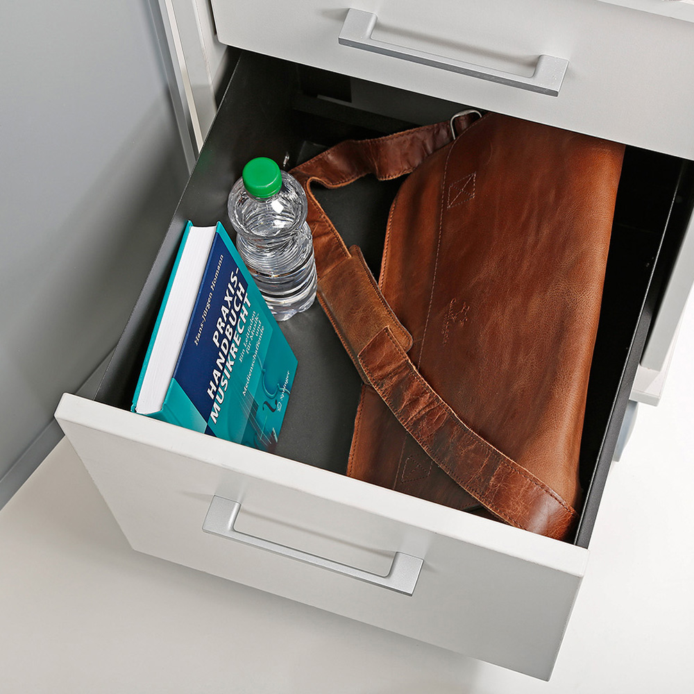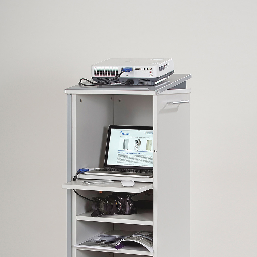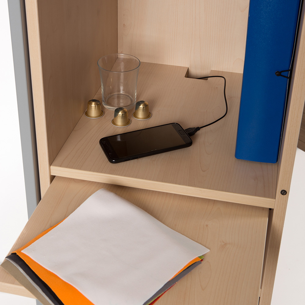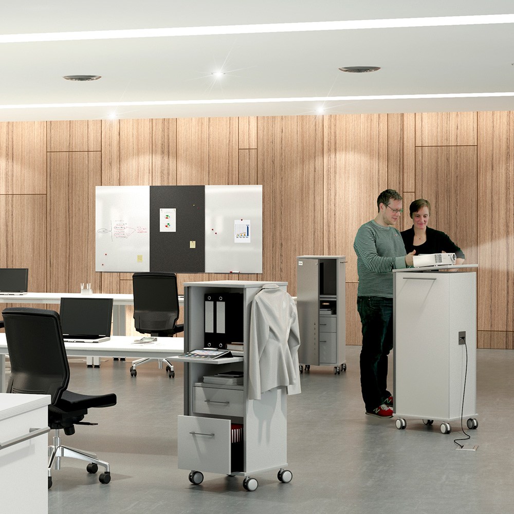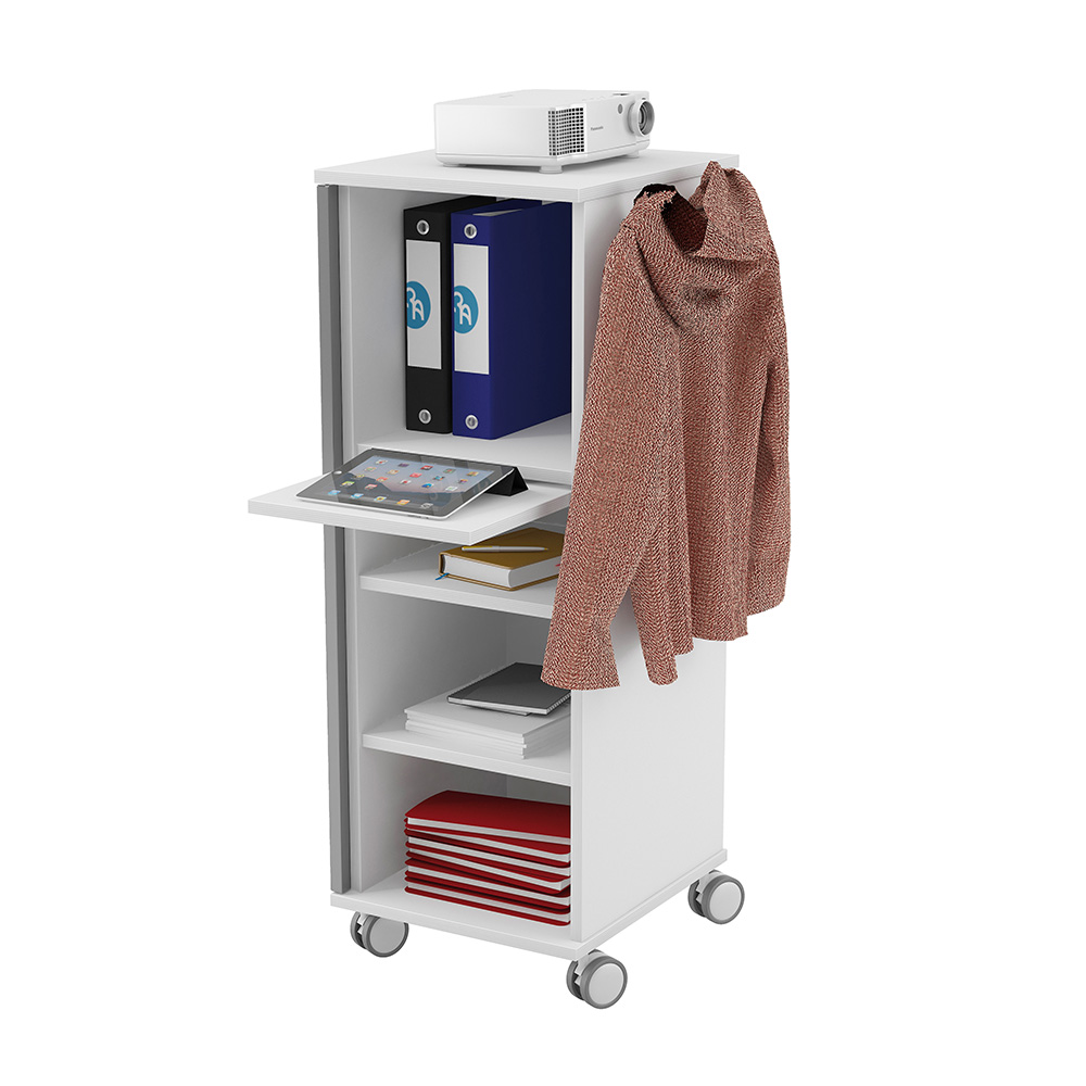 CADDY es un mueble multifuncional diseñado para crear un puesto de trabajo móvil y completo. Incorpora estantes, cajones, bandeja extraíble para equipos informáticos, paso de cables y puerta metálica con cerradura, además de una bandeja superior abatible para presentaciones. Robusto, práctico y fácil de mover gracias a sus ruedas con freno, es la solución perfecta para entornos de trabajo flexibles y colaborativos.