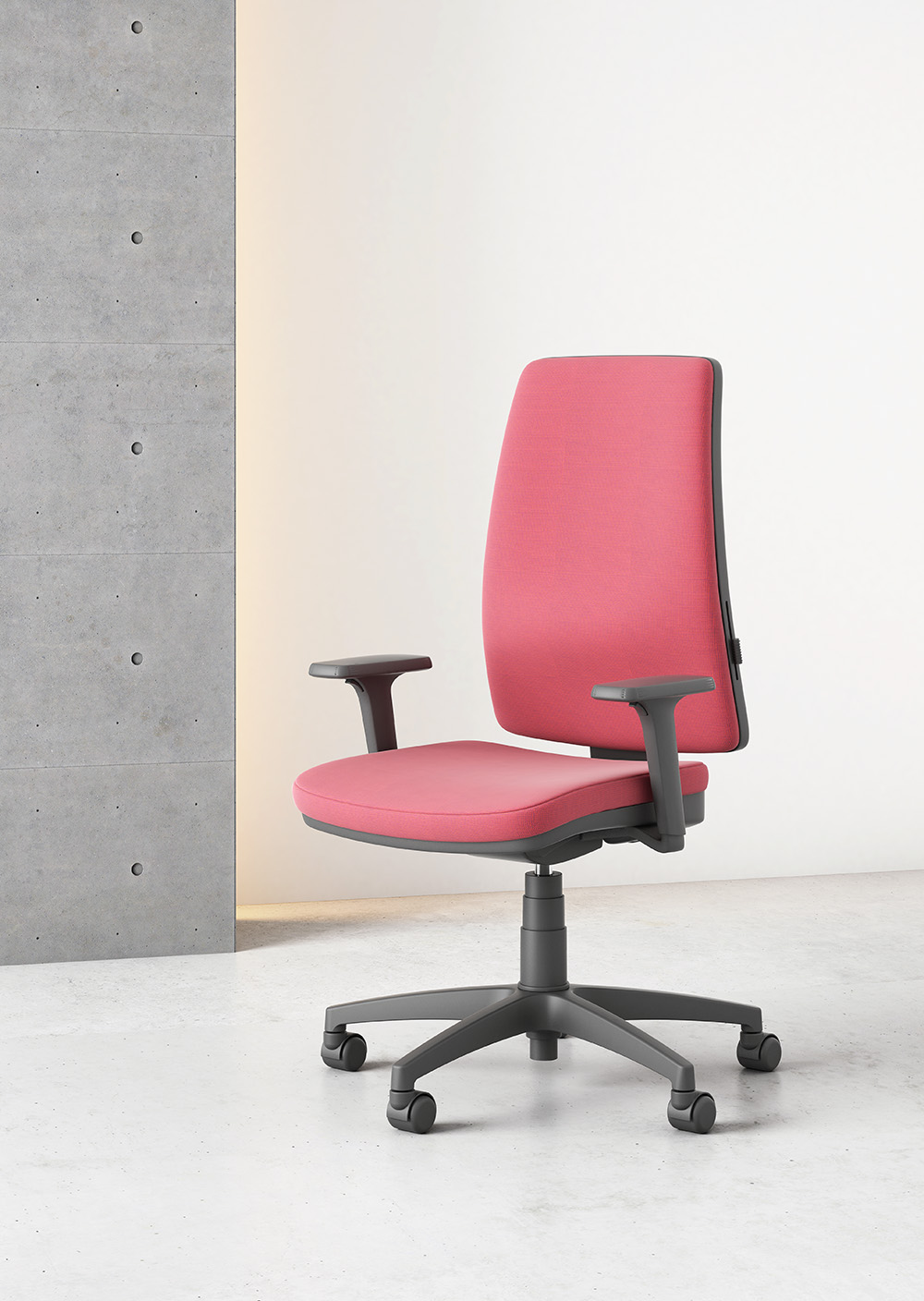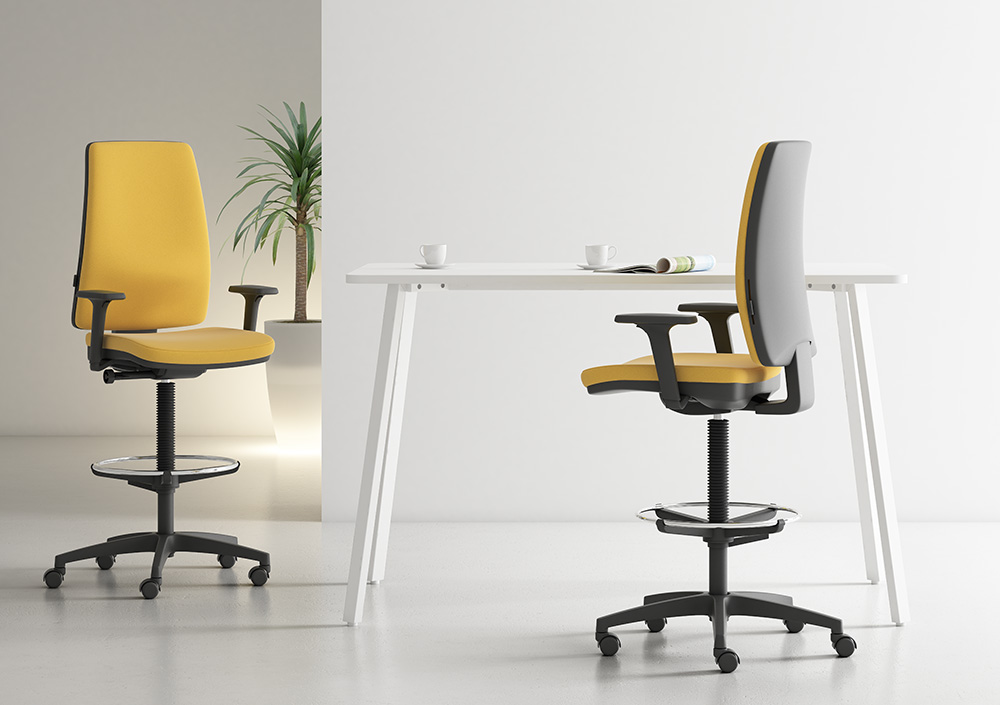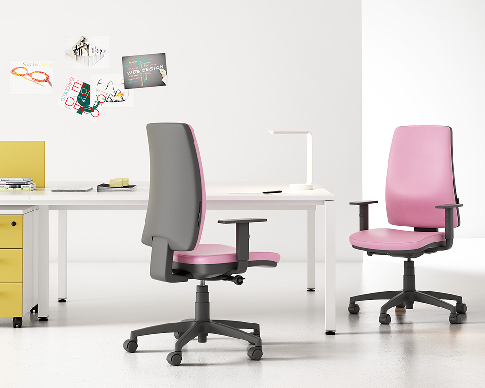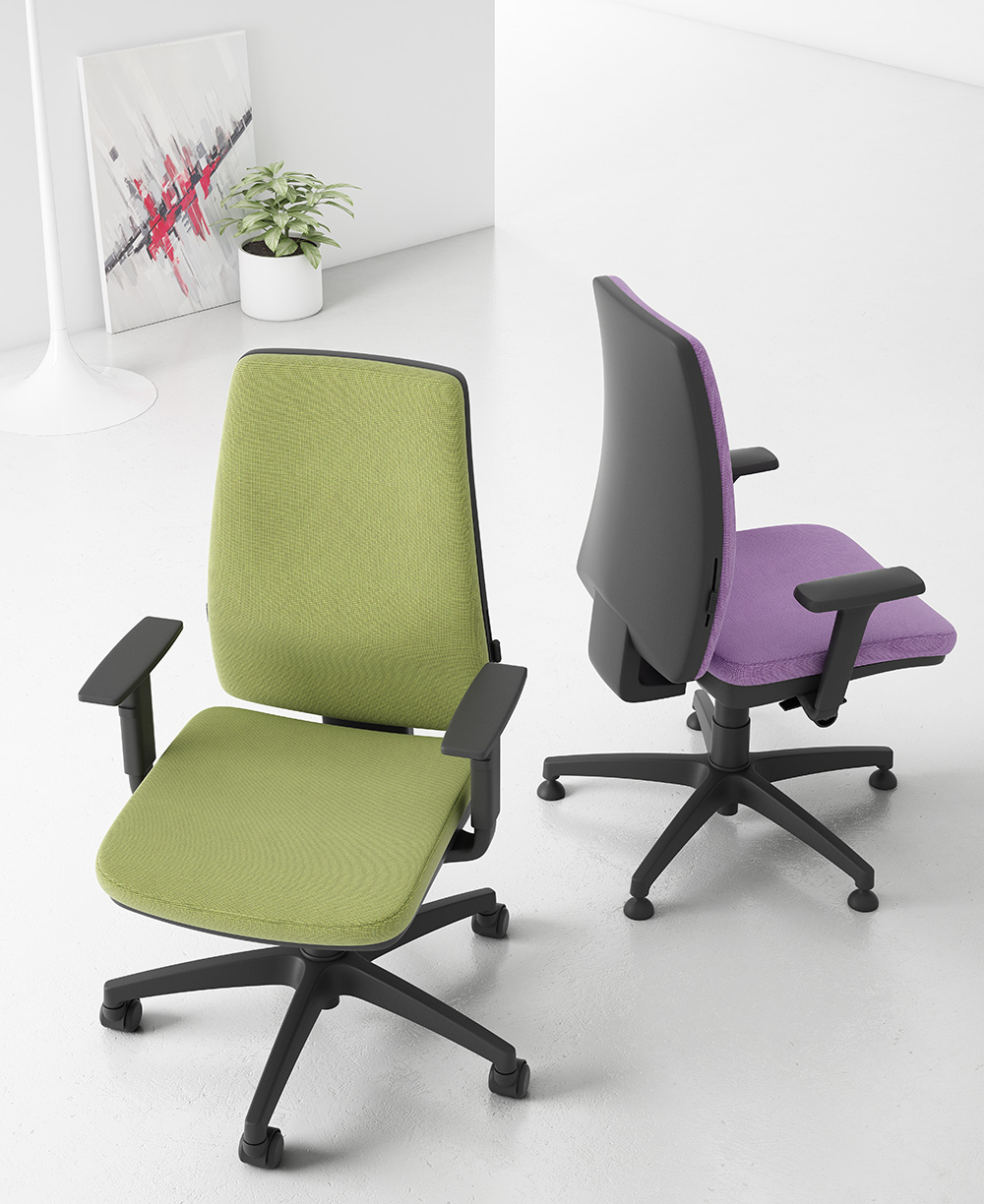 Odesa es una silla operativa versátil y funcional, pensada para el trabajo diario continuado. Cuenta con asiento y respaldo tapizados, refuerzo lumbar regulable, mecanismo sincro con bloqueo multiposición y regulación de profundidad del asiento. Su diseño es sobrio, resistente y fácil de configurar, lo que la convierte en una solución fiable para oficinas dinámicas que buscan ergonomía sin complicaciones.