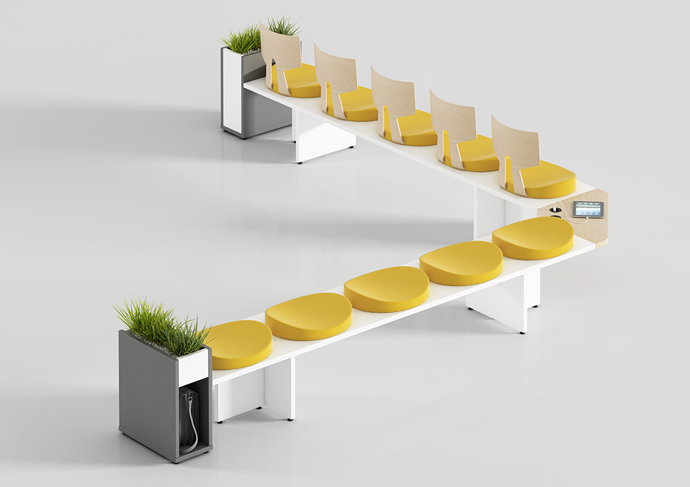 Lorca es una bancada de diseño arquitectónico y marcado carácter contract, creada para espacios públicos y corporativos que buscan funcionalidad con identidad. Combina una estructura de bilaminado con respaldos de madera contrachapada orientables y asientos tapizados de alta resistencia. Con opciones de jardineras y ángulos de unión, Lorca permite crear composiciones dinámicas y ordenadas, aportando diseño, confort y durabilidad en zonas de espera y encuentro.