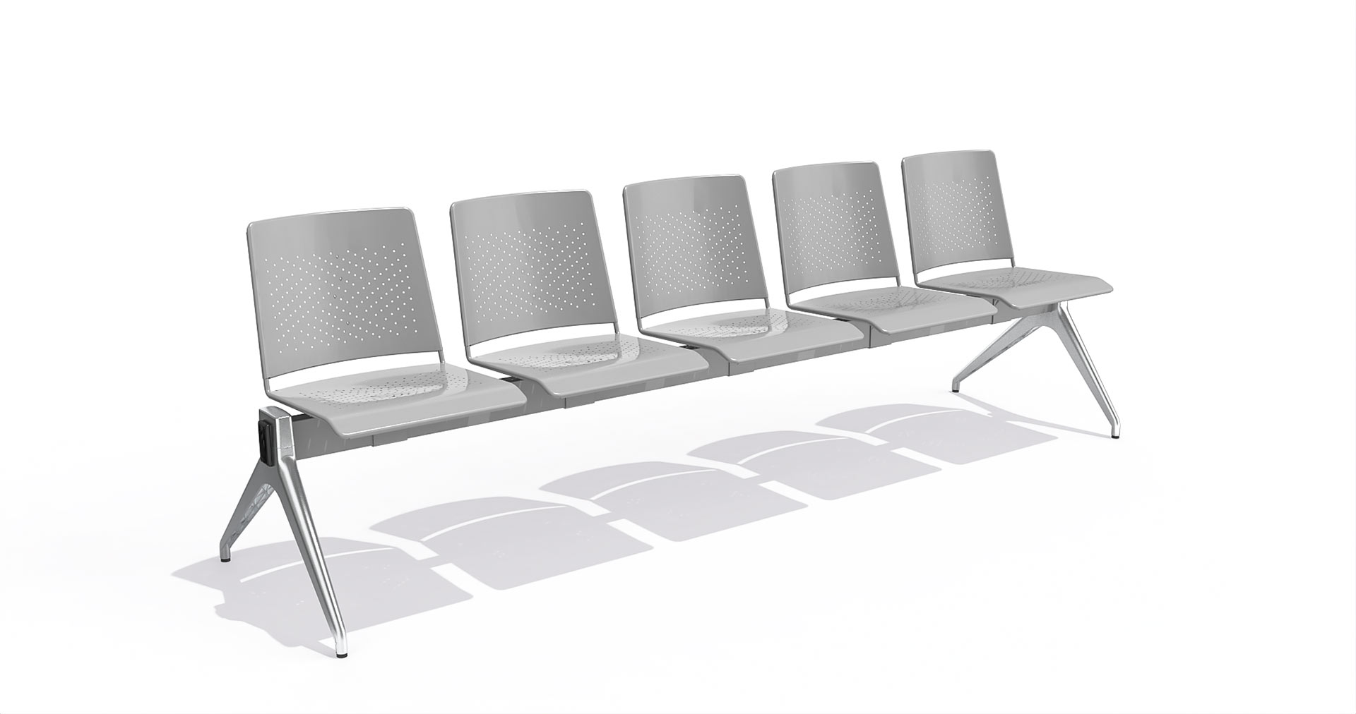 Nexus es una serie de sillas y bancadas de acero pensada para espacios de alto tránsito como salas de espera, hospitales o aeropuertos. Su respaldo perforado aporta ligereza visual y mejora la ventilación, mientras que su estructura metálica con acabados epoxi garantiza resistencia y durabilidad tanto en interiores como en exteriores. Disponible en versión de cuatro patas o en bancadas de hasta cinco plazas, es una solución robusta, funcional y de mantenimiento sencillo.