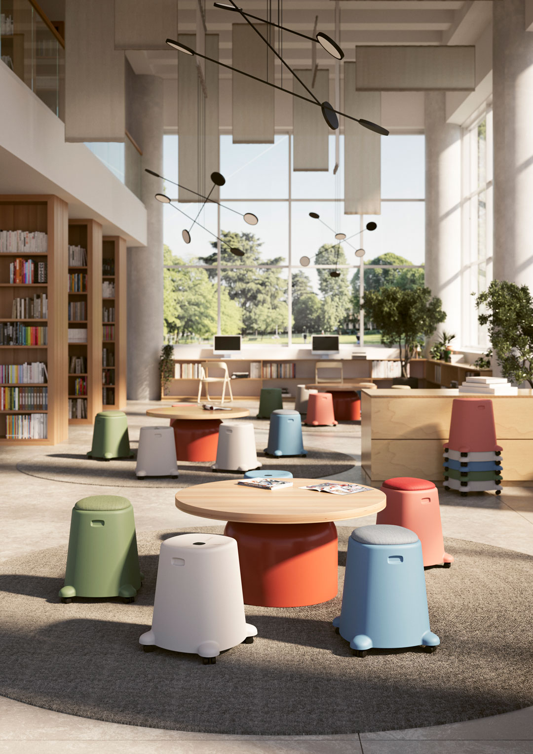 Tabal es un taburete compacto y móvil diseñado para entornos de trabajo ágiles. Fabricado en polipropileno resistente y apoyado sobre cuatro ruedas, facilita el movimiento continuo en espacios colaborativos, aulas y zonas de formación. Su diseño sobrio, apilable y disponible en varios colores lo convierte en una solución práctica, flexible y fácil de almacenar sin renunciar a una imagen actual.