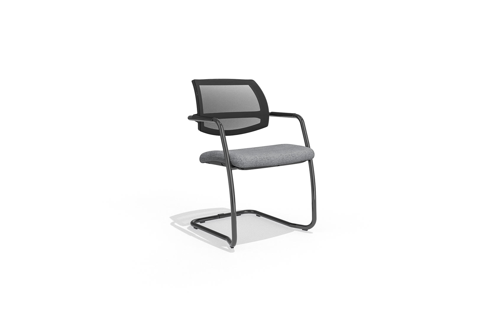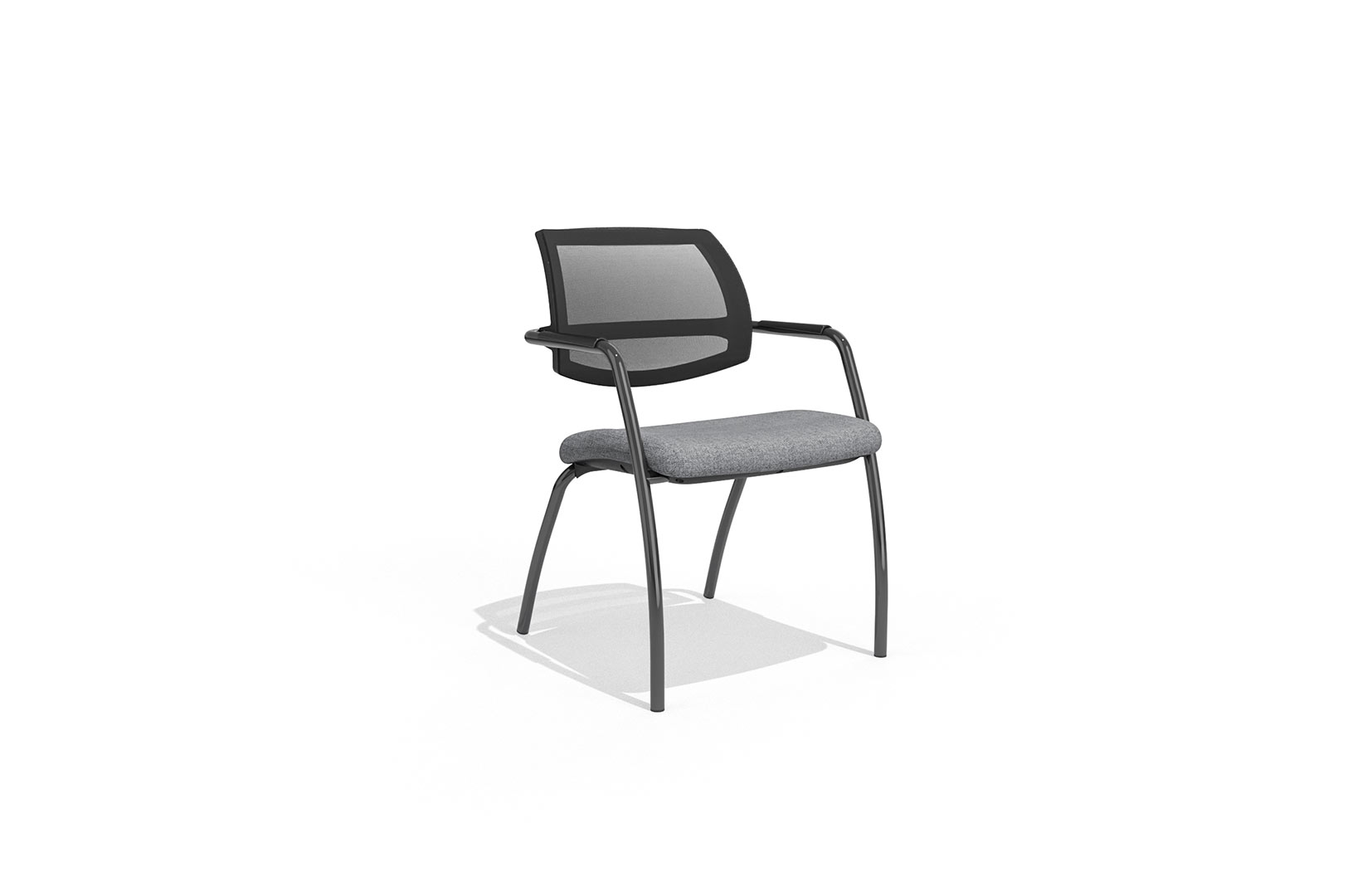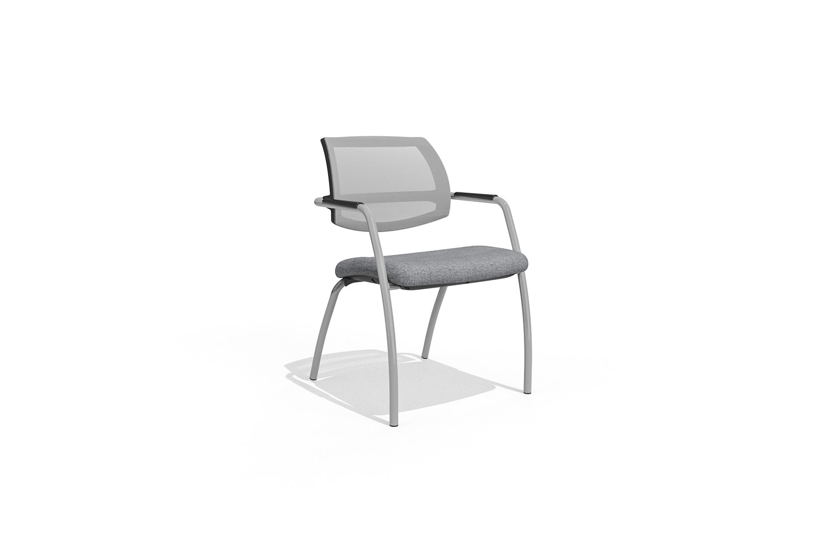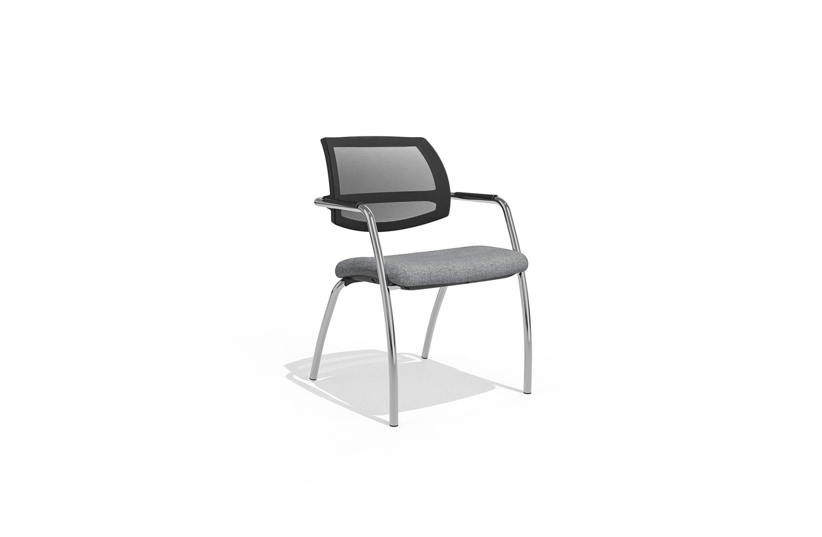 Destaca por sus patas en forma de patín o cuatro patas uniendo el respaldo y el patín en una única línea hasta el suelo. Está disponible en una gran variedad de tapizados a elegir para acomodarse fácilmente a los espacios. Su base está disponible en gris (de serie), negro o cromo (opcional con incremento).